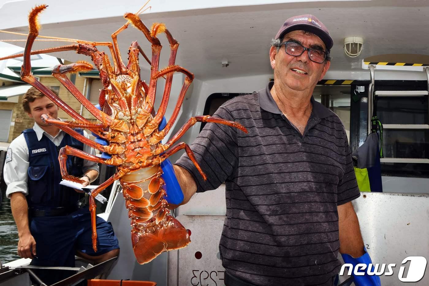 지난 2020년 12월27일(현지시간) 서호주 프리맨틀에 있는 피싱 보트 하버에서 한 수산업자가 고객에게 당일 잡은 랍스터를 보여주고 있다. 사우스차이나모닝포스트(SCMP)는 12일 중국이 호주산 랍스터 수입을 재개할 수 있다고 보도했다. 20.12.27 ⓒ AFP=뉴스1 ⓒ News1 김예슬 기자
