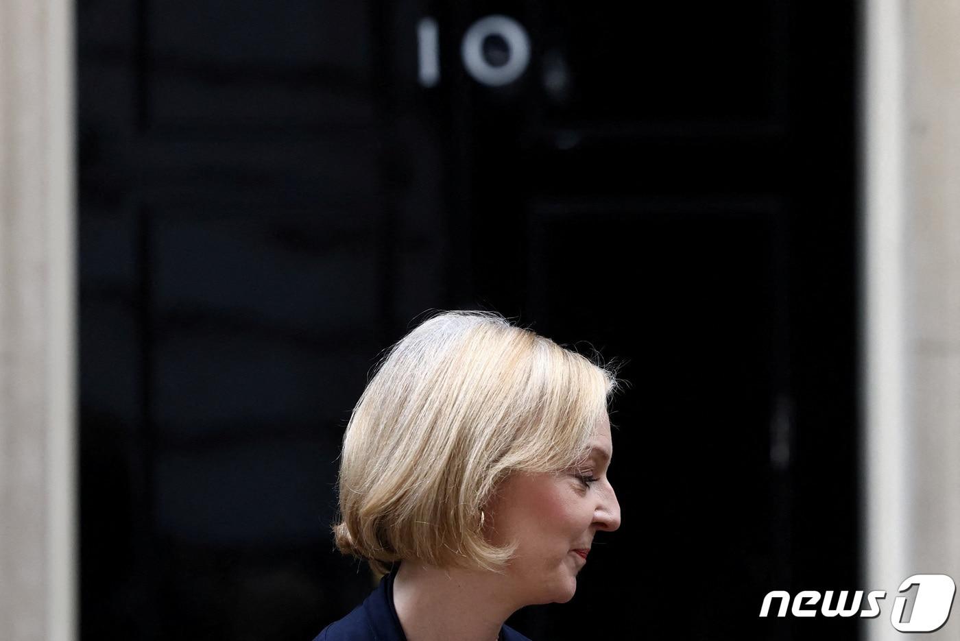 리즈 트러스 영국 총리가 20일(현지시간) 런던 총리 집무실인 다우닝가 10번지 앞에서 기자회견을 열고 사임의사를 밝혔다. 2022. 10. 20. ⓒ 로이터=뉴스1 ⓒ News1 최서윤 기자