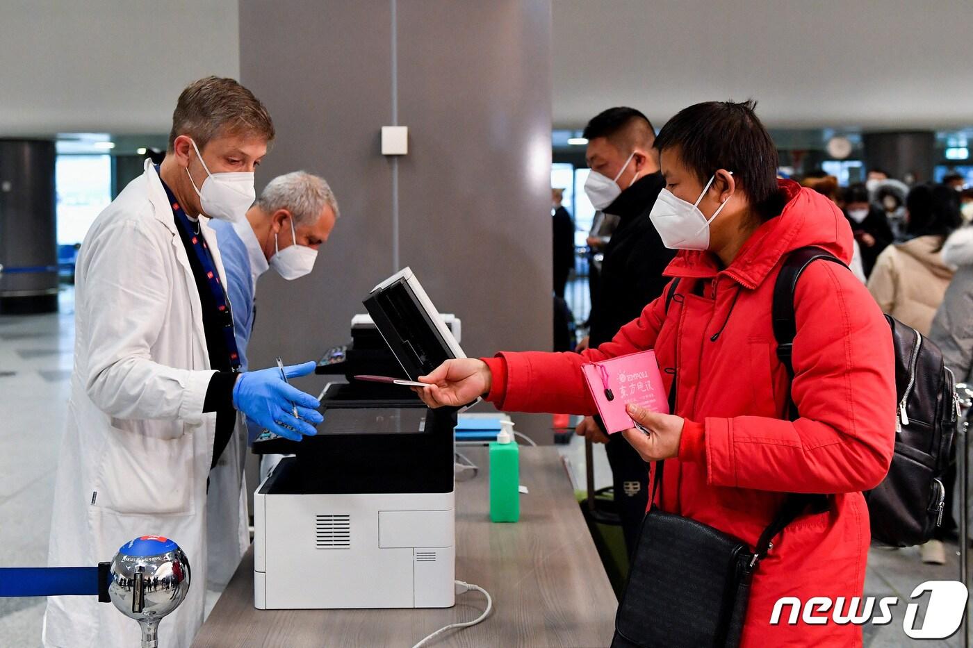 29일(현지시간) 이탈리아 밀라노 말펜사 공항에서 중국에서 오는 모든 여행객을 대상으로 코로나19 검사를 진행하고 있다. ⓒ 로이터=뉴스1 ⓒ News1 권진영 기자
