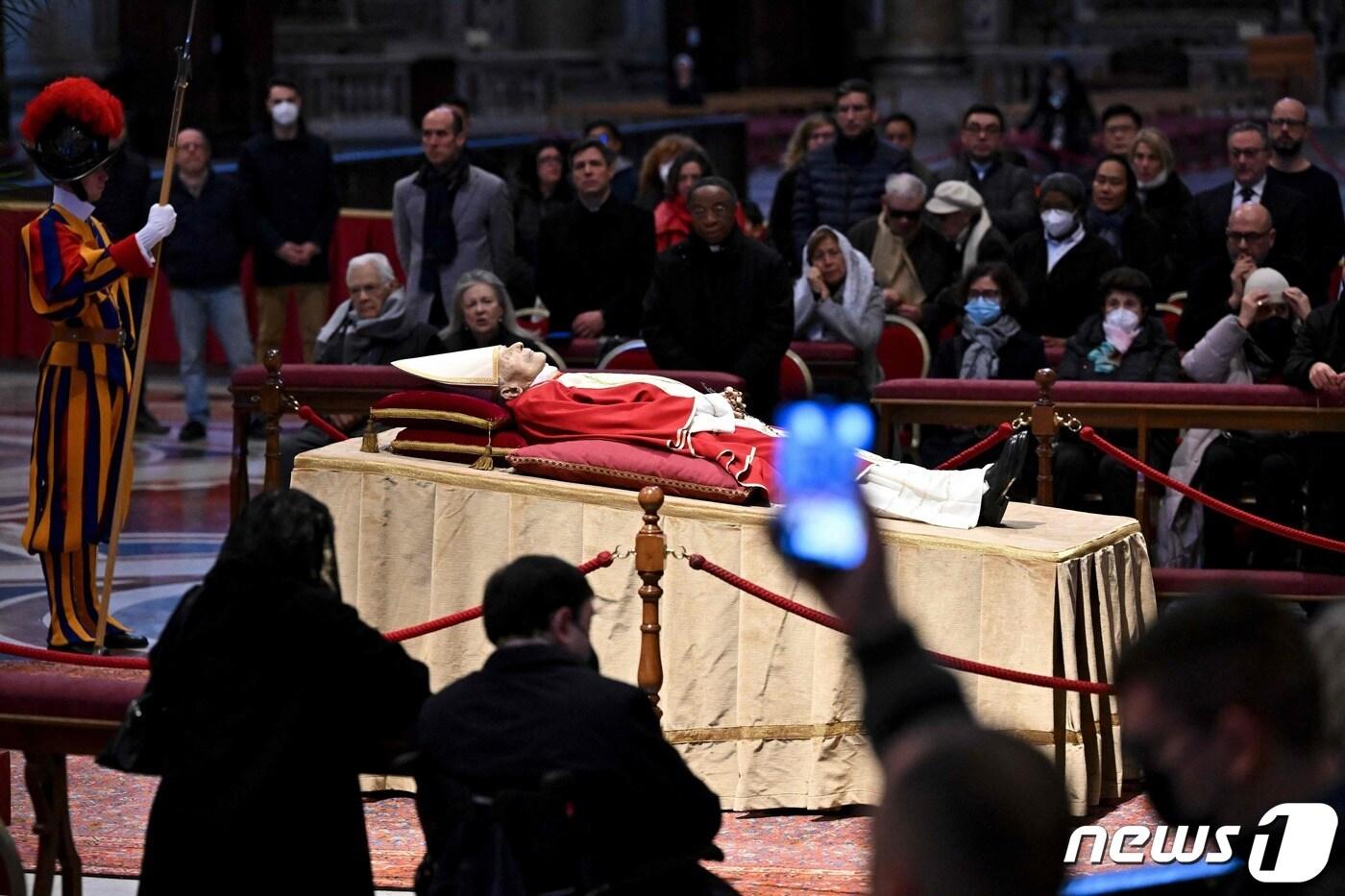 2일(현지시간) 바티칸의 성 베드로 대성전에 안치된 베네딕토 16세 명예 교황의 유해. 2023.01.02/뉴스1 ⓒ 로이터=뉴스1 ⓒ News1 김민수 기자