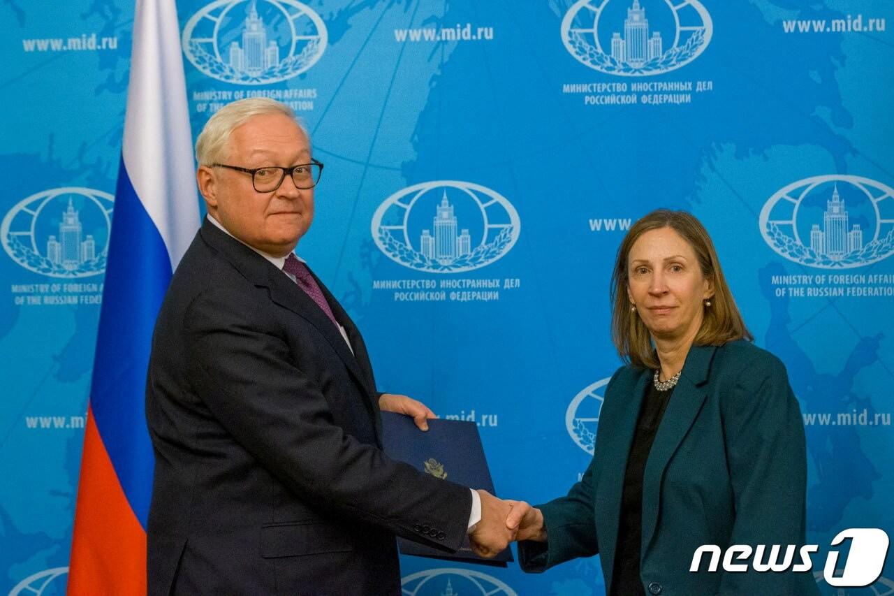 러 외무부 발표세르게이 랴브코프 러시아 외무차관이 30일(현지시간) 러시아 외무부에서 린 트레이시 신임 미국 대사에게 신임장을 전달하며 악수하고 있다. 2023 .1. 30. ⓒ 로이터=뉴스1 ⓒ News1 최서윤 기자관련 키워드뉴스타트미러 대화우크라침공