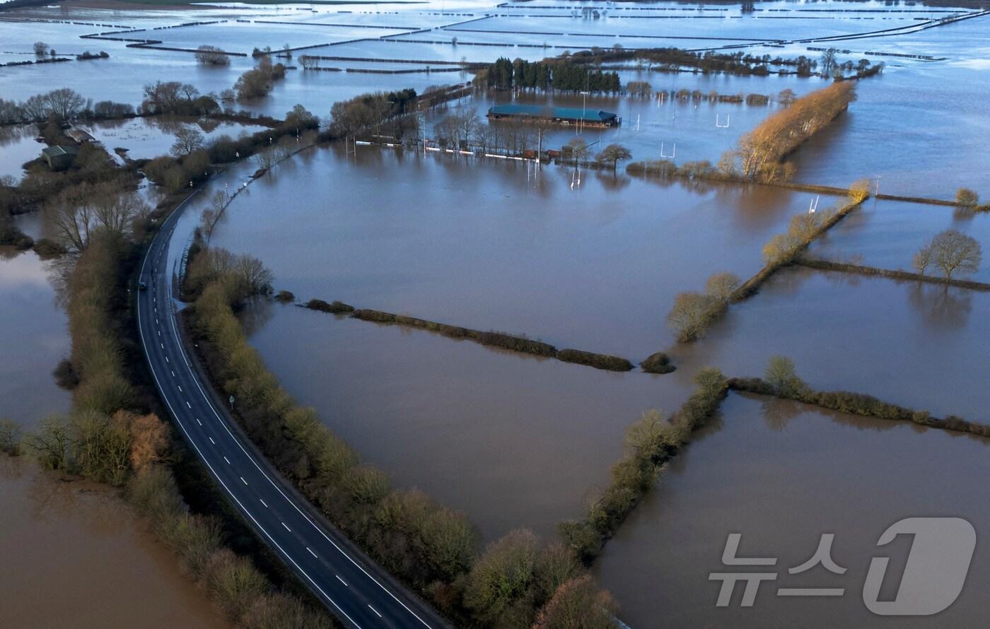 영국 뉴어크온트렌트 인근을 강타한 폭풍 헹크의 여파로 트렌트 강둑이 무너져 들판이 침수됐다. 2024.01.06/ ⓒ 로이터=뉴스1 ⓒ News1 권진영 기자