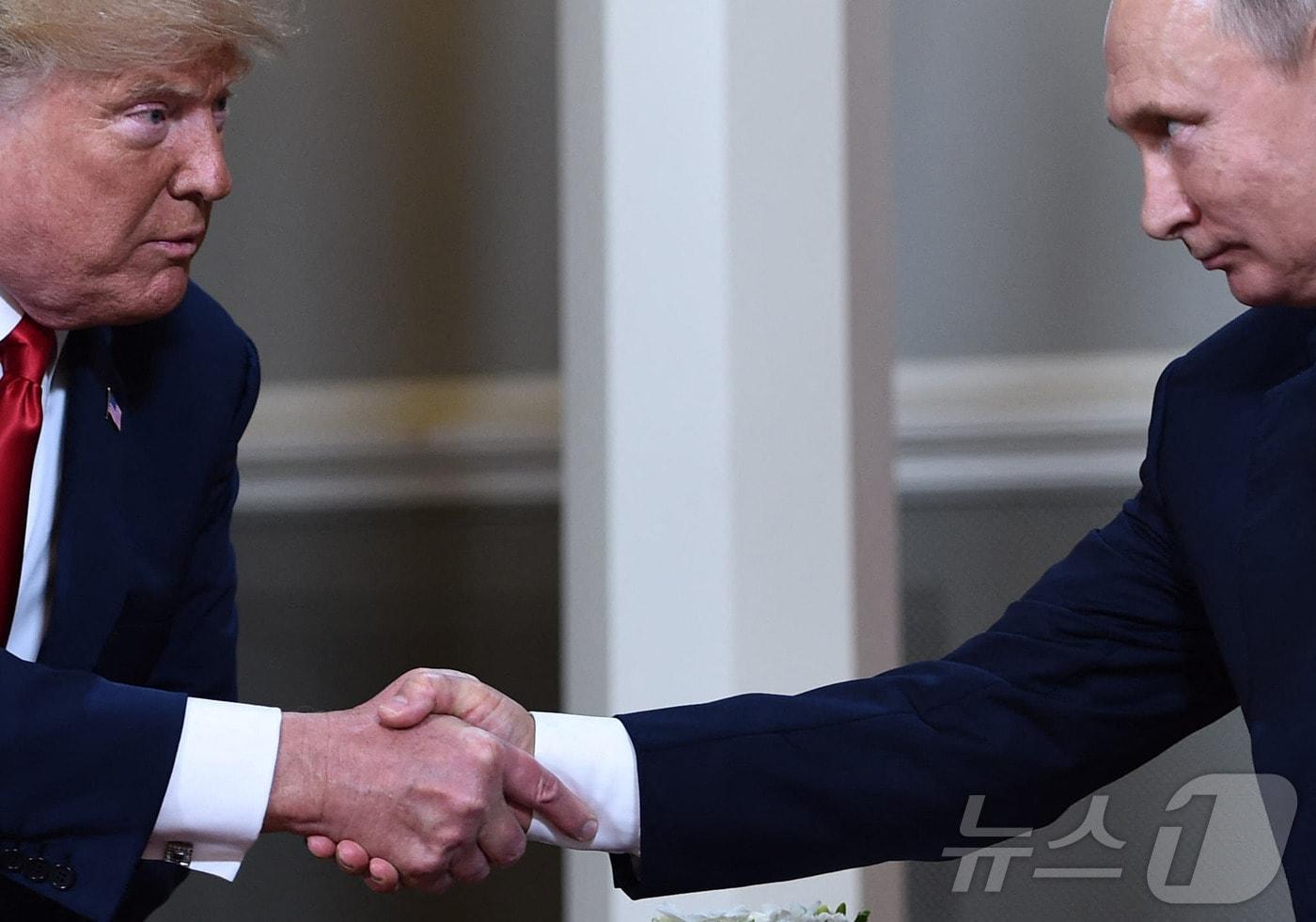 도널드 트럼프 미국 대통령과 푸틴 러시아 대통령이 2018년 7월 핀란드 헬싱키에서 만나 악수하고 있다. ⓒ AFP=뉴스1 ⓒ News1 류정민 특파원