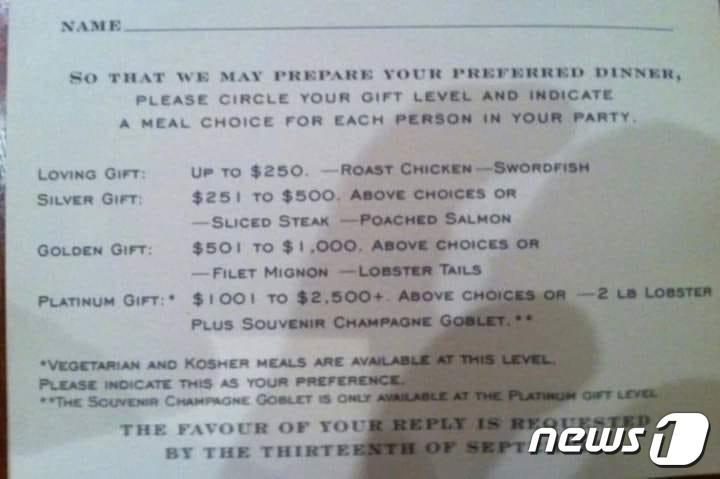 "축의금 액수 따라 랍스터·소고기·치킨 차등 제공"…예비 부부 '뭇매'