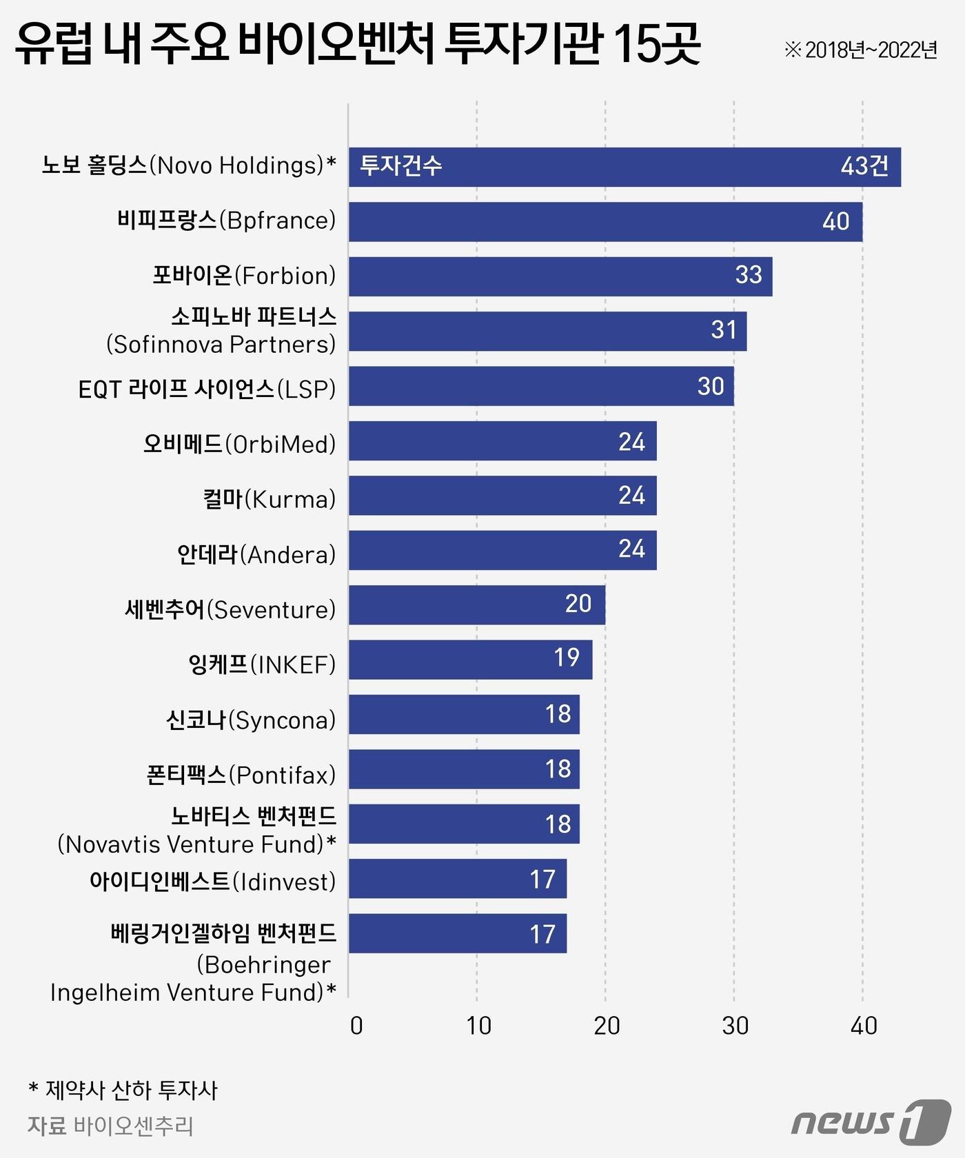 노바티스, 베링거인겔하임 투자펀드도 순위권ⓒ News1 윤주희 디자이너◇상단의 배너를 누르시면 바이오센추리 (BioCentury)기사 원문을 보실 수 있습니다.(뉴스1 홈페이지 기사에 적용)관련 키워드바이오센추리관련 기사세계가 주목하는 대전 바이오 산업…글로벌 진출 발판 마련대전 바이오벤처 19개사 '2025 BIO USA' 전시회 참여