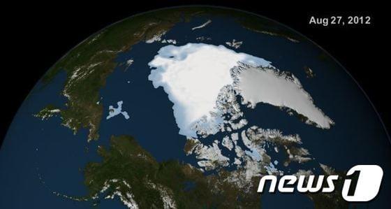 북극항로 '꿈의 뱃길'로 끝날 수도온난화 틀리면 '그린정책' 에 든 사회적 비용도 물거품2012년 8월 27일 북극권을 촬영한 위성사진 (나사)© News1 2013년 8월 15일 위성사진 (나사) © News1