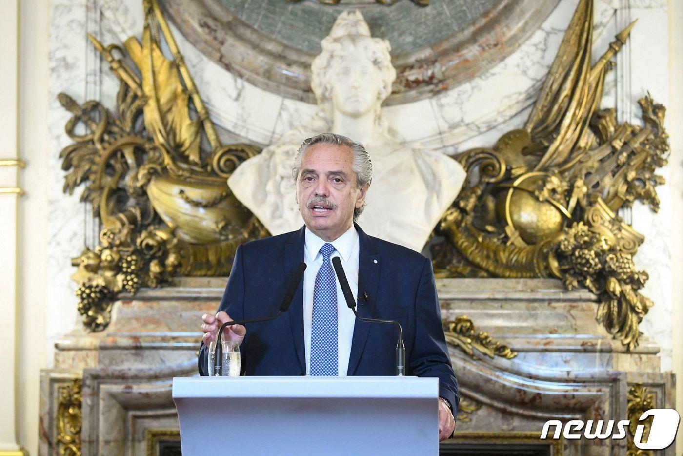 5일(현지시간) 아르헨티나 부에노스아이레스의 카사 로사다 대통령궁에서 알베르토 페르난데스 아르헨티나 대통령이 TV방송 연설을 하고 있다. 2022.12.5. ⓒ AFP=뉴스1 ⓒ News1 김성식 기자