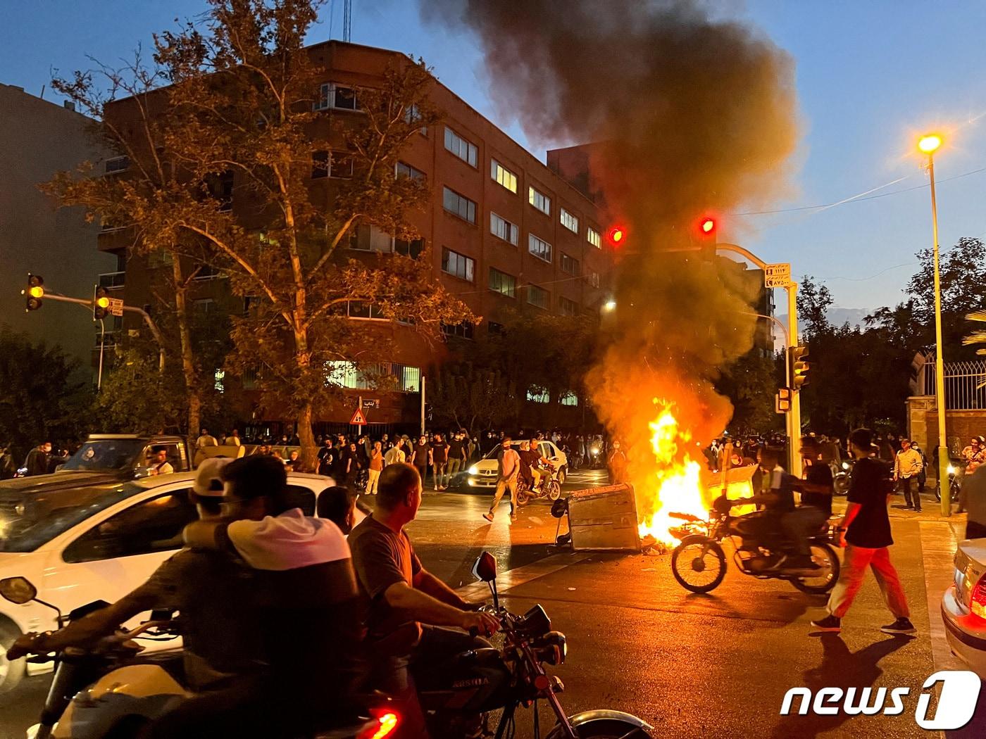 배우·감독·스포츠스타 등 '히잡 반대 시위' 공개적 지지19일(현지시간) 이란의 수도 테헤란에서 마흐사 아미니(22)의 죽음에 분노한 시민들이 이란 정부를 규탄하는 시위를 벌이다 경찰 오토바이 한 대를 불태우고 있다. 아미니는 지난 13일 테헤란에서 히잡을 착용하지 않았다는 혐의로 현지 도덕경찰에 구속돼 수사를 받던 도중 의문사 했다. ⓒ 로이터=뉴스1 ⓒ News1 김성식 기자관련 키워드이란히잡시위김예슬 기자 北 파병군 유가족에 신규 주택 2500가구 배정…전사자 규모 '축소' 의혹北, 김정은 경호라인 '물갈이'…고위급 세대교체 흐름 지속(종합)관련 기사저항의 상징 된 이란 여성…히잡 벗고 하메네이 사진 태워 담뱃불로스타링크로 이란 시민들 인터넷 복구…트럼프 "머스크와 논의"트럼프, 이란 시위 사망 급증에 "강력한 조치 고려…軍 검토 중""이란 시위 2000명 넘게 숨졌을 가능성"…美 군사옵션 검토(종합)반정부 시위 확산 속…트럼프 행정부, '이란 대규모 공습'까지 논의