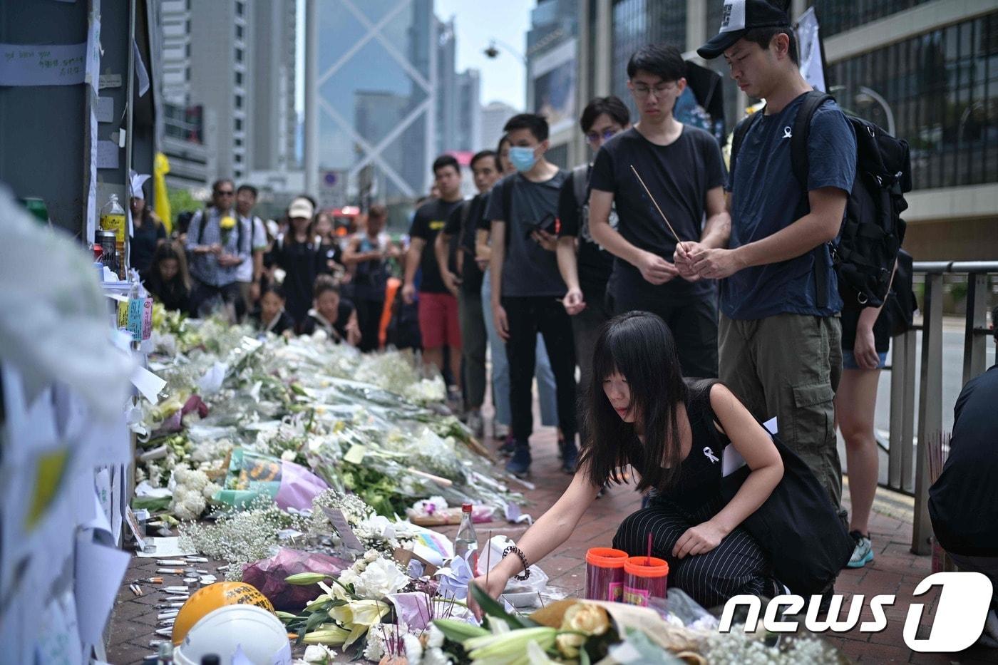 범죄인 인도법 개정에 반대해 시위를 벌이다 사망한 량모씨를 추모하는 홍콩 시민들. ⓒ AFP=뉴스1
