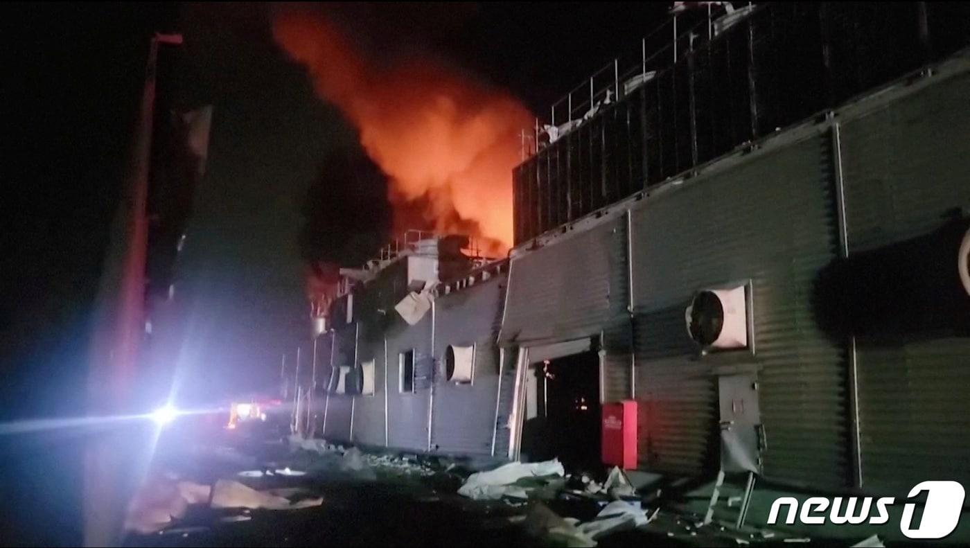 22일(현지시간) 대만 핑둥현의 골프공 제조 공장에서 대형 화재가 발생한 후 연기가 피어오르고 있다. 2023.09.22/뉴스1 ⓒ 로이터=뉴스1 ⓒ News1 김민수 기자