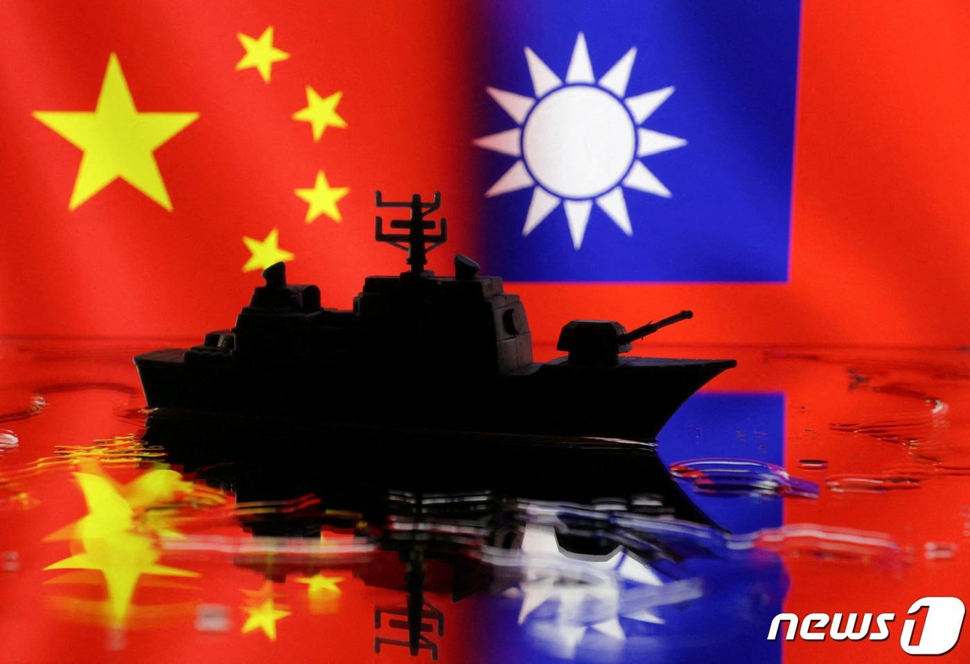 중국과 대만 국기, 해군 함정이 합성된 삽화. 2023.04.11/ ⓒ 로이터=뉴스1 ⓒ News1 권진영 기자