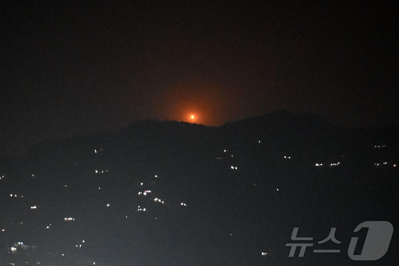 7일(현지시간) 인도의 푼치에서 파키스탄와 파키스탄이 장악한 카슈미르 지역을 향한 포격으로 화염이 솟아 오르고 있다. 2025.05.07 ⓒ AFP=뉴스1 ⓒ News1 우동명 기자