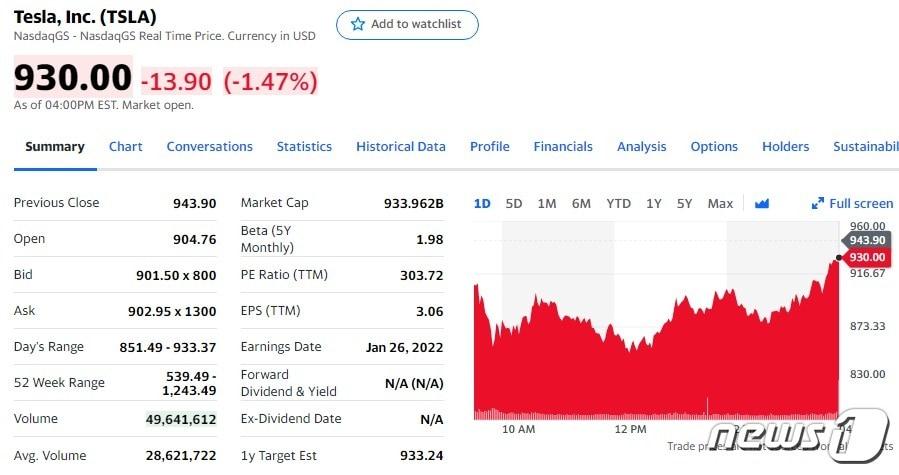 테슬라 일일 주가추이 - 야후 파이낸스 갈무리관련 키워드테슬라박형기 기자 엔비디아 PER 45-테슬라는 302…엔비디아 저가 매수할 만미증시 연일 하락하는데 암호화폐는 랠리, 상승세로 방향 잡은 듯관련 기사전세계 휴머노이드 로봇 설치 1만 6천대 돌파…상용화 측면 진전엔비디아 PER 45-테슬라는 302…엔비디아 저가 매수할 만머스크 "FSD 내달부터 일시불로 안 판다, 월 구독만 가능"지난해 국내 신차 23종 실내공기질 '합격'…유해물질 기준 충족기술주 매도, 브로드컴 4% 급락하는 등 7대 기술주 일제↓(상보)
