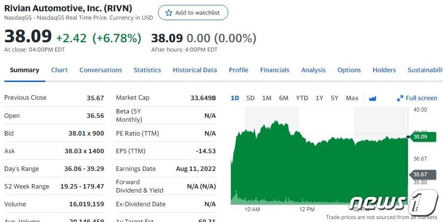 리비안 일일 주가추이 - 야후 파이낸스 갈무리관련 키워드리비안박형기 기자 “지금이라도 메모리 반도체에 베팅하라”-블룸버그“TSMC 랠리로 코스피 11일 연속 신고가 행진”-블룸버그관련 기사테슬라 0.13%-루시드 7.29%, 전기차 일제 하락(상보)테슬라 1.79%-리비안 7.16%, 전기차 일제 하락(종합)UBS 투자 등급-목표가 하향, 리비안 7.16% 급락이란 사태 영향 미치기 시작, 기술주 매도세…미증시 일제↓(상보)테슬라 0.39%-루시드 2.85%, 전기차 일제 하락(상보)