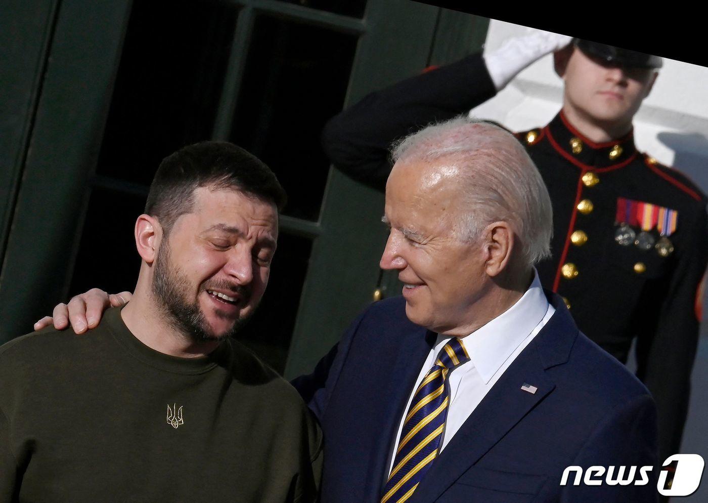 조 바이든 미국 대통령이 지난달 21일(현지시간) 워싱턴 백악관에서 볼로디미르 젤렌스키 우크라이나 대통령과 만나 환영하던 모습. ⓒ AFP=뉴스1 ⓒ News1 우동명 기자