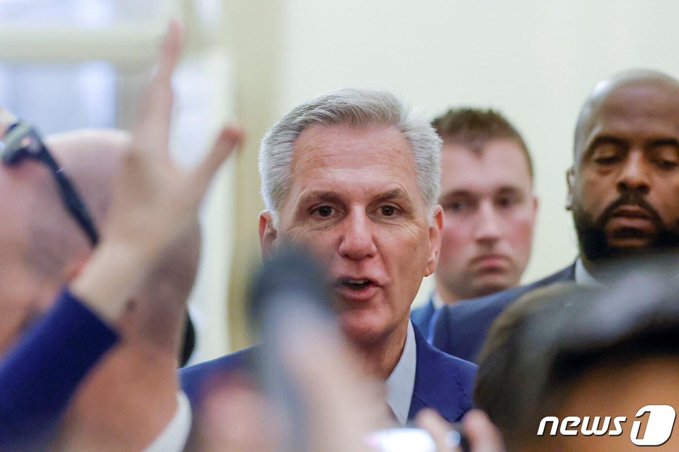 케빈 매카시 하원의장이 26일(현지시간) 부채 한도 협상을 진행한 뒤 기자회견을 실시하고 있다. 2023.05.26. ⓒ 로이터=뉴스1 ⓒ News1 정윤영 기자