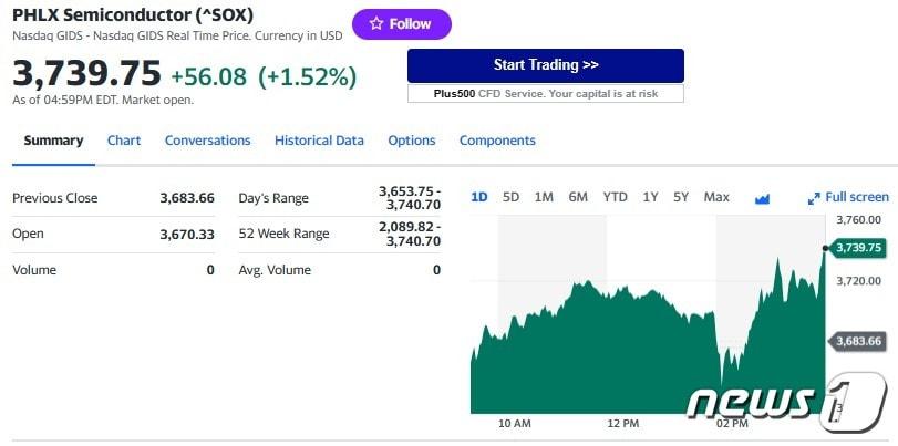 필라델피아반도체지수 일일 추이 - 야후 파이낸스 갈무리엔비디아 일일 주가추이 - 야후 파이낸스 갈무리AMD 일일 주가추이 - 야후 파이낸스 갈무리관련 키워드엔비디아AMD챗GPT열풍박형기 기자 중국 전기차 결국 북미 대륙 상륙…테슬라 어쩌나도이치은행 투자 등급 상향에도 쿠팡 0.56% 하락관련 기사엔비디아·MS, AI 스타트업 앤트로픽에 22조원 공동 투자AMD 9% 폭등, 엔비디아 대항마 급부상…엔비디아 아성 흔들(종합)엔비디아 0.1% 하락했는데, AMD는 9.4% 폭등(상보)AMD 대약진, 엔비디아 독점 깨지나(종합)래리 엘리슨 오라클 CEO, 저커버그 제치고 '세계 2위 부자'로