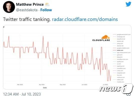 트위터 트래픽 추이 - 매튜 프린스 트위터 갈무리관련 키워드스레드박형기 기자 "이란 대규모 시위 주요 은행 파산에서 시작돼"-WSJ트럼프 관세 폭탄에도 지난해 中무역흑자 1.2조달러 '사상 최고'관련 기사메타, 호주 SNS금지법 이후 계정 54만개 삭제…"부작용 우려"판매처 알려주는 '두쫀쿠 맵'도 나왔다…품절 대란에 재료비 폭등초코바 15개, 박스 15개에 개별 포장 배송한 쿠팡…"뜯다가 날 새겠다""엘베 담배 냄새, 숨 못 쉬겠다" 민원 넣자 "너 몇 호냐?" 협박한 흡연자'진짜 어른'에 목마른 사회…책·SNS 등으로 '어른다움' 좇는다