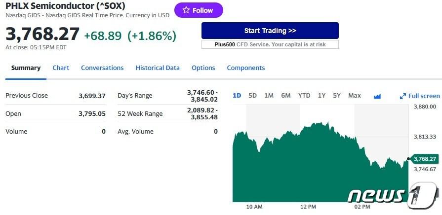 필라델피아반도체지수 일일 추이 - 야후 파이낸스 갈무리엔비디아 일일 주가추이 - 야후 파이낸스 갈무리인텔 일일 주가추이 - 야후 파이낸스 갈무리관련 키워드반도체인텔박형기 기자 “지금이라도 메모리 반도체에 베팅하라”-블룸버그“TSMC 랠리로 코스피 11일 연속 신고가 행진”-블룸버그관련 기사TSMC 4.44% 급등, 반도체지수 1.76% 상승(종합)미국 반도체주 대부분 랠리했으나 인텔은 1% 하락엔비디아 1.44% 하락, 반도체지수도 0.60%↓(종합)반도체주 일제 하락했는데, 인텔은 3% 급등인텔 7%-AMD 6% 급등, 반도체지수 1% 상승(종합)