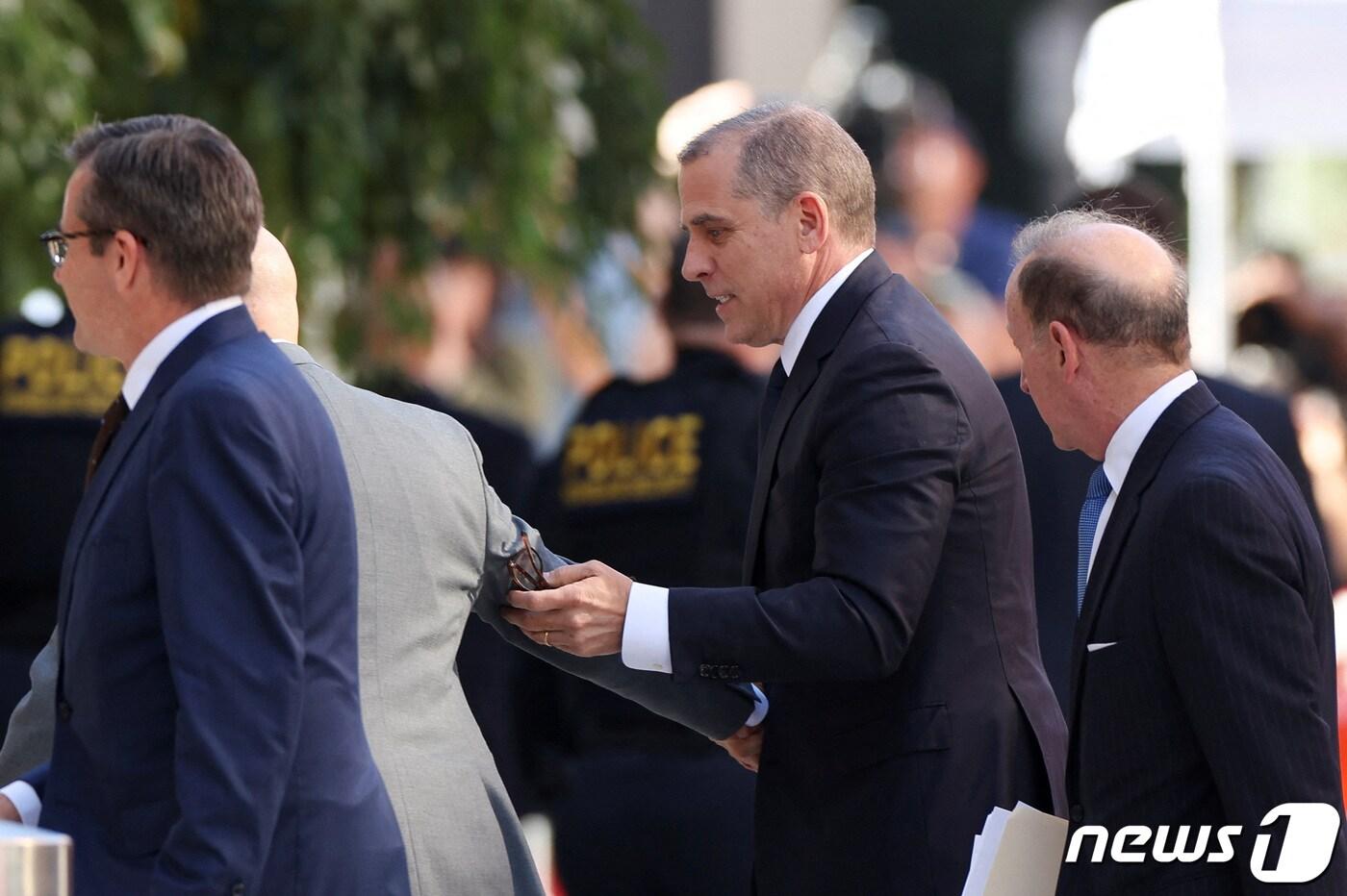 조 바이든 미국 대통령의 차남 헌터 바이든이 3일(현지시간) 미국 델라웨어주 윌밍턴 연방법원에서 열린 총기 불법 소지 혐의와 관련한 기소인부절차에 출석하고 있다. 2023.10.03. ⓒ 로이터=뉴스1 ⓒ News1 김현 특파원