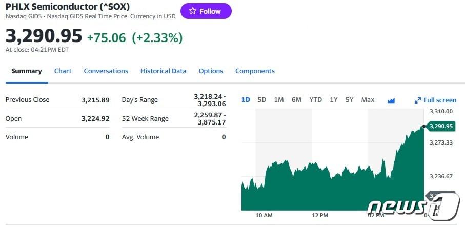 필라델피아반도체지수 일일 추이 - 야후 파이낸스 갈무리AMD 일일 주가추이 - 야후 파이낸스 갈무리관련 키워드반도체지수AMD박형기 기자 “엔비디아 연말에 시총 7조달러 돌파할 것”-야후 파이낸스“BTS 컴백 투어로 1조5000억 벌어들일 것”-BBC관련 기사인텔 7%-AMD 6% 급등, 반도체지수 1% 상승(종합)[속보] 미증시 일제 하락에도 반도체는 랠리, 반도체지수 1%↑엔비디아 0.06% 상승, 반도체지수 0.47%↑(상보)인텔 10.80% 폭등, 반도체지수도 2.73% 급등(종합)외인 순매도에 코스피 4500선 '위태'…삼전·SK하닉, 동반 하락[개장시황]