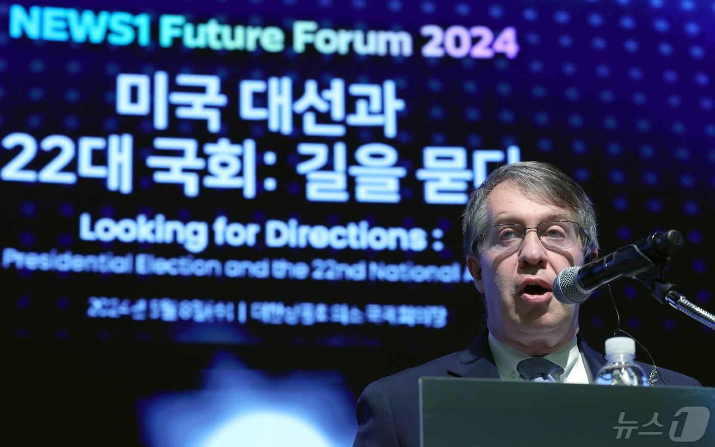 스콧 스나이더 한미경제연구소 소장이 8일 서울시 중구 세종대로 대한상공회의소 국제회의장에서 열린 '뉴스1 미래포럼 2024'에서 미국 대선과 한미관계를 주제로 기조연설을 하고 있다. 2024.5.8/뉴스1 ⓒ News1 박정호 기자