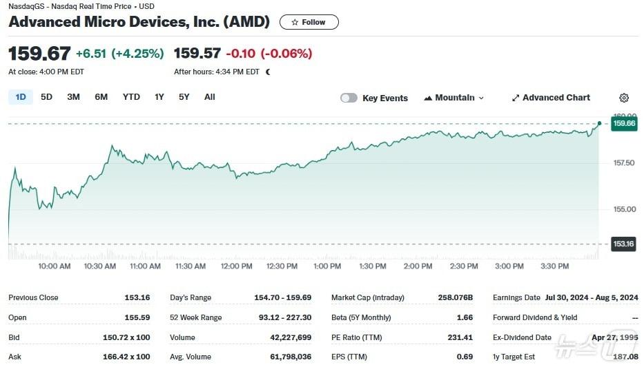 AMD 일일 주가 추이 - 야후 파이낸스 갈무리엔비디아 일일 주가추이 - 야후 파이낸스 갈무리관련 키워드amd엔비디아박형기 기자 트럼프 관세 폭탄에도 지난해 中무역흑자 1.2조달러 '사상 최고'“엔비디아 연말에 시총 7조달러 돌파할 것”-야후 파이낸스관련 기사인텔 7%-AMD 6% 급등, 반도체지수 1% 상승(종합)엔비디아 0.47% 상승했는데, AMD는 6.39% 급등[속보] 미증시 일제 하락에도 반도체는 랠리, 반도체지수 1%↑SK하이닉스, 인텔 제치고 세계 3위 등극…AI, 반도체 판 흔들었다엔비디아 0.06% 상승, 반도체지수 0.47%↑(상보)