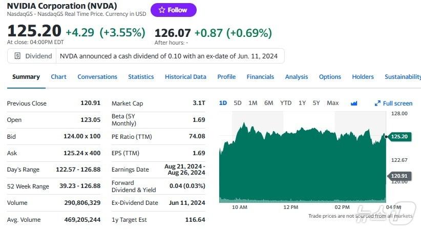 엔비디아 일일 주가추이 - 야후 파이낸스 갈무리미국 기업 시총 톱 5 - 야후 파이낸스 갈무리관련 키워드엔비디아박형기 기자 중국 전기차 결국 북미 대륙 상륙…테슬라 어쩌나도이치은행 투자 등급 상향에도 쿠팡 0.56% 하락관련 기사통상본부장 "美 반도체 관세, 단기 영향 제한적…美에 쿠팡 문제 설득"'닌텐도 스위치2' 반년 써보니…"스마트폰화된 콘솔"[토요리뷰]마이크론 7.76% 급등, 반도체지수 1.15% 상승(종합)TSMC 효과 하루살이…엔비디아 0.41% 하락현대차그룹, '피지컬 AI' 진용 완비…모셔널·포티투닷 통합 속도