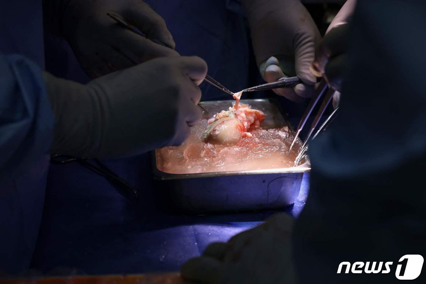 지난 3월 16일(현지시간) 매사추세츠주 보스턴에 있는 매사추세츠 종합병원의 외과의사들이 세계 최초로 유전자 변형 돼지 신장을 살아있는 인간에게 이식하기 위해 돼지 신장을 준비 중이다. 병원은 21일 이식이 성공했다고 밝혔다. 2024.03.21 ⓒ AFP=뉴스1 ⓒ News1 조소영 기자관련 키워드기계식 심장 펌프 여성 돼지 신장 이식권영미 기자 "시신 찾아가려면 1000만원"…이란 당국 횡포에 유족 눈물美해군 '트럼프급' 전함…건조비 220억달러 '사상 최고' 전망