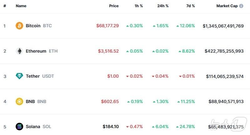 이 시각 현재 주요 암호화폐 시황 - 코인마켓캡 갈무리비트코인 일일 가격 추이. 새벽 3시를 전후로 급락했다 다시 상승하고 있다. - 코인마켓캡 갈무리관련 키워드Blockchain바이든비트코인박형기 기자 “지금이라도 메모리 반도체에 베팅하라”-블룸버그“TSMC 랠리로 코스피 11일 연속 신고가 행진”-블룸버그