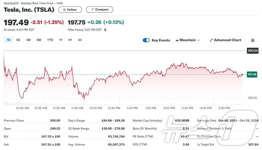 테슬라 일일 주가추이 - 야후 파이낸스 갈무리테슬라가 공식 출시한 사이버트럭. ⓒ 로이터=뉴스1 ⓒ News1 박형기 기자루시드 일일 주가추이 - 야후 파이낸스 갈무리관련 키워드테슬라리비안루시드니콜라전기차박형기 기자 18일 오전 6시 마이크론 실적 발표, 또 AI 주 급락하나中 GPU 업체 메타X 상장 첫날 주가 755%까지 폭등관련 기사포드 전기차 철수, 테슬라 제외 전기차 일제 급락(종합)테슬라 3.56% 급등-루시드 5.82% 급락, 전기차 혼조(종합2)테슬라 3%-리비안 12%, 루시드 제외 전기차 랠리(종합)테슬라 1%-리비안 6%-루시드 1%, 전기차 일제 하락(상보)테슬라 1.39% 상승-리비안 1.19% 하락, 전기차 혼조(상보)