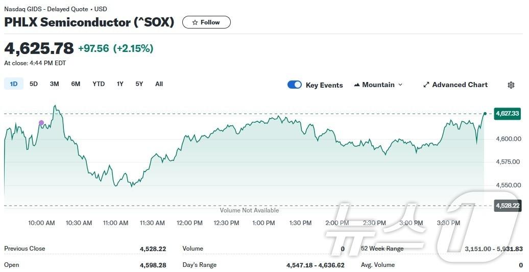 필라델피아반도체지수 일일 추이 - 야후 파이낸스 갈무리엔비디아 일일 주가추이 - 야후 파이낸스 갈무리TSMC 일일 주가추이 - 야후 파이낸스 갈무리관련 키워드반도체지수엔비디아인텔TSMCAMD박형기 기자 18일 오전 6시 마이크론 실적 발표, 또 AI 주 급락하나中 GPU 업체 메타X 상장 첫날 주가 755%까지 폭등관련 기사엔비디아 0.81% 상승에도 반도체지수 0.46% 하락(종합)엔비디아 0.73% 상승에도 반도체지수 0.61%↓ 7000 붕괴(종합)브로드컴 충격, 반도체 우수수…반도체지수 5.10% 급락(종합)오라클 충격에 반도체주 일제 하락, 반도체지수 0.75%↓(상보)엔비디아 0.64% 하락에도 반도체지수는 1.29% 상승(종합)
