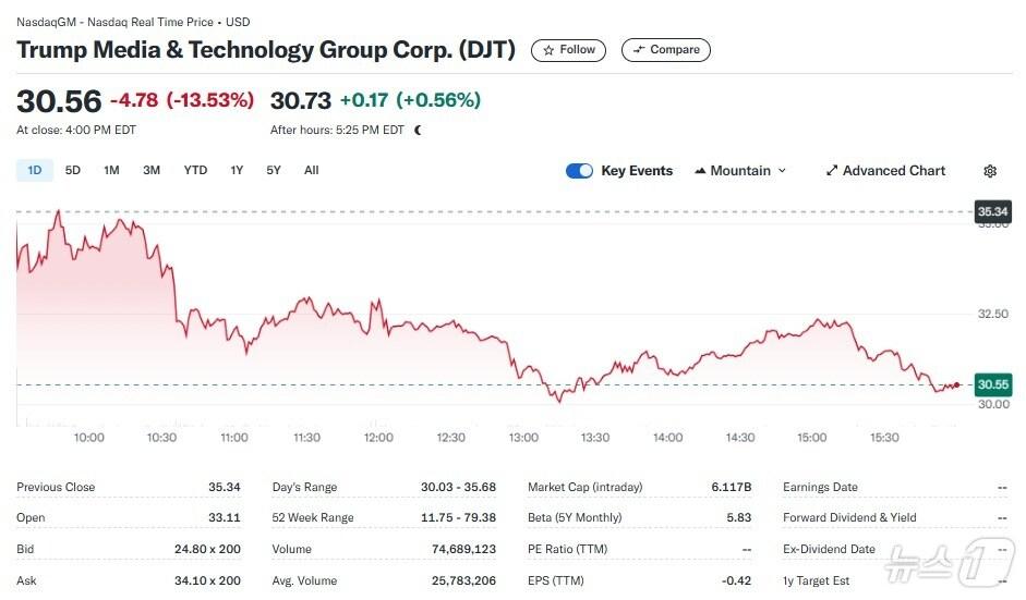 DJT 일일 주가추이 - 야후 파이낸스 갈무리관련 키워드DJT틀럼프미국대선박형기 기자 “지금이라도 메모리 반도체에 베팅하라”-블룸버그“TSMC 랠리로 코스피 11일 연속 신고가 행진”-블룸버그