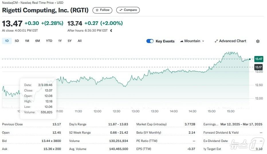 리게티 일일 주가추이 - 야후 파이낸스 갈무리관련 키워드리게티양자 컴퓨터박형기 기자 “지금이라도 메모리 반도체에 베팅하라”-블룸버그“TSMC 랠리로 코스피 11일 연속 신고가 행진”-블룸버그관련 기사차익 실현, 리게티 6.48% 급락하는 등 양자주 일제↓노벨상 수상자 한마디에 양자주 일제 폭등, 리게티 15%(상보)리게티 4%·퀀텀 7% 급등…빅테크 급락에도 양자컴주 일제 랠리젠슨 황 리게티와 협력, 리게티 오늘도 8% 급등"사천피는 낯설어"…동학개미, 삼전 팔고 곱버스 샀다[개미투자보고서]