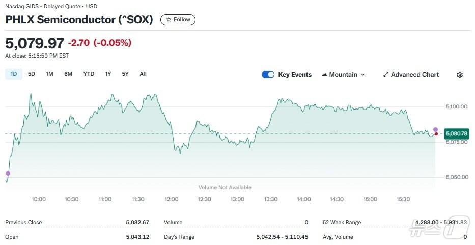 반도체지수 일일 추이 - 야후 파이낸스 갈무리엔비디아 일일 주가추이 - 야후 파이낸스 갈무리인텔 일일 주가추이 - 야후 파이낸스 갈무리관련 키워드반도체지수엔비디아인텔ARMTSMC박형기 기자 중국 전기차 결국 북미 대륙 상륙…테슬라 어쩌나도이치은행 투자 등급 상향에도 쿠팡 0.56% 하락관련 기사마이크론 7.76% 급등, 반도체지수 1.15% 상승(종합)TSMC 4.44% 급등, 반도체지수 1.76% 상승(종합)엔비디아 1.44% 하락, 반도체지수도 0.60%↓(종합)인텔 7%-AMD 6% 급등, 반도체지수 1% 상승(종합)CPI 둔화에도 실적 우려, 미증시 일제 하락…다우 0.80%↓(상보)