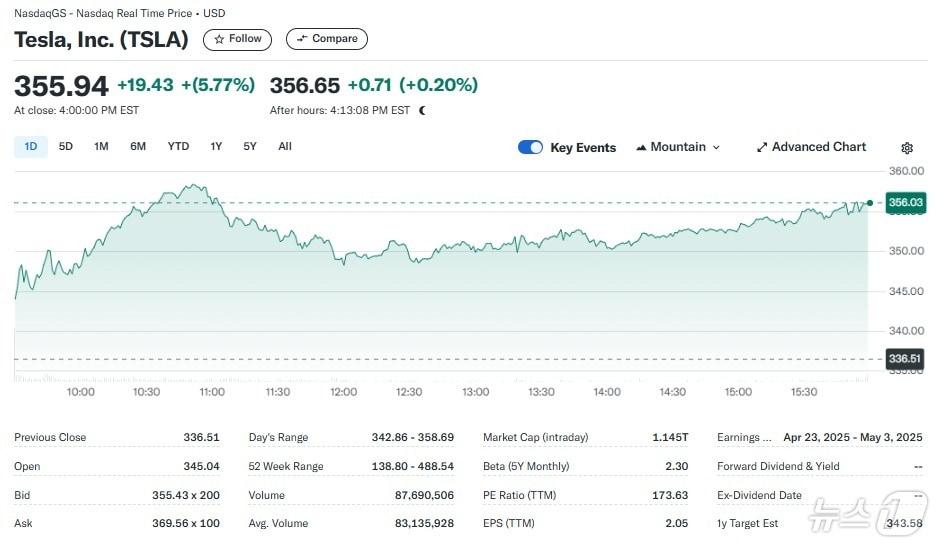 테슬라 일일 주가추이 - 야후 파이낸스 갈무리관련 키워드테슬라머스크전기 장갑차박형기 기자 중국 전기차 결국 북미 대륙 상륙…테슬라 어쩌나도이치은행 투자 등급 상향에도 쿠팡 0.56% 하락관련 기사"테슬라 믿습니다"…두달간 30% 내려도 4조 사들인 '불개미'[서학망원경]니콜라 10% 폭락-리비안 5% 급등, 전기차 혼조(종합)전일 6% 급등했던 테슬라 오늘은 0.03% 하락테슬라 6%-루시드 14%, 니콜라 제외 전기차 일제 랠리(종합)테슬라 이틀 연속 랠리, 시총 7위 복귀(상보)