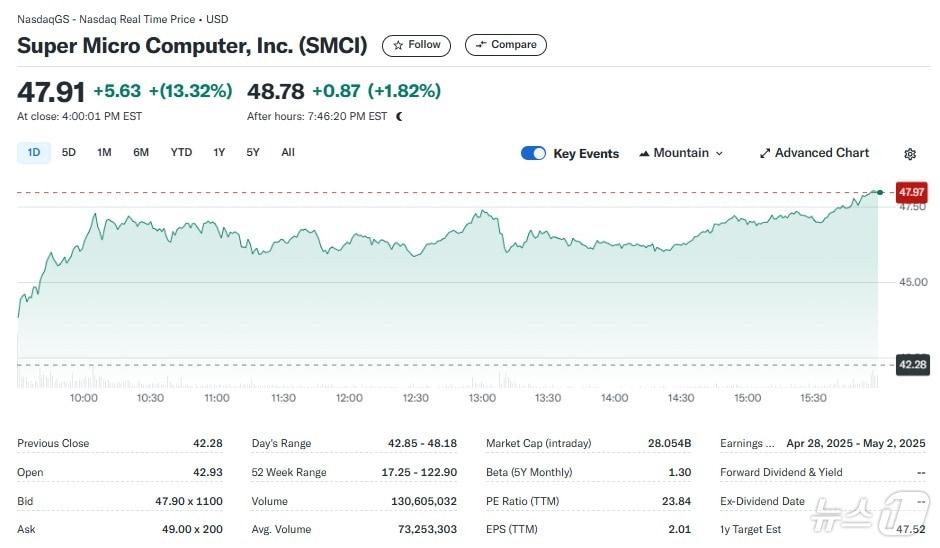 슈퍼마이크로 일일 주가추이 - 야후 파이낸스 갈무리슈퍼 마이크로 컴퓨터 로고. ⓒ 로이터=뉴스1 ⓒ News1 박형기 기자관련 키워드슈퍼마이크로엔비디아메타회계 부정박형기 기자 중국 전기차 결국 북미 대륙 상륙…테슬라 어쩌나도이치은행 투자 등급 상향에도 쿠팡 0.56% 하락관련 기사'수출규제' 엔비디아 AI칩 1.4조원 中유입…"어떻게든 방법 찾아"엔비디아 하락에도 반도체지수는 0.79% 상승(종합)