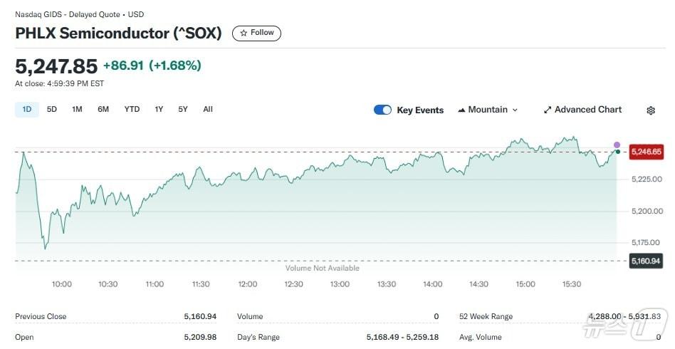 반도체지수 일일 추이 - 야후 파이낸스 갈무리인텔 일일 주가추이 - 야후 파이낸스 갈무리엔비디아 일일 주가추이 - 야후 파이낸스 갈무리관련 키워드반도체지수인텔엔비디아브로드컴TSMC마이크론박형기 기자 중국 전기차 결국 북미 대륙 상륙…테슬라 어쩌나도이치은행 투자 등급 상향에도 쿠팡 0.56% 하락관련 기사마이크론 7.76% 급등, 반도체지수 1.15% 상승(종합)TSMC 4.44% 급등, 반도체지수 1.76% 상승(종합)엔비디아 1.44% 하락, 반도체지수도 0.60%↓(종합)인텔 7%-AMD 6% 급등, 반도체지수 1% 상승(종합)CPI 둔화에도 실적 우려, 미증시 일제 하락…다우 0.80%↓(상보)