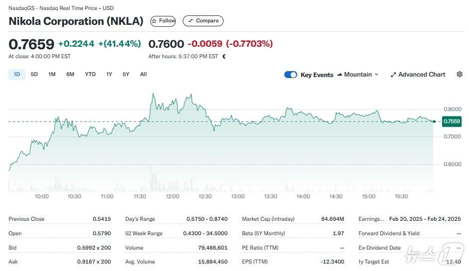 니콜라 일일 주가추이 - 야후 파이낸스 갈무리관련 키워드니콜라파산 위기주가 널뛰기테슬라박형기 기자 중국 전기차 결국 북미 대륙 상륙…테슬라 어쩌나도이치은행 투자 등급 상향에도 쿠팡 0.56% 하락관련 기사테슬라 3% 급락-니콜라 13% 폭등, 전기차 혼조(종합)니콜라 파산 위기에도 13% 폭등, 주가 널뛰기