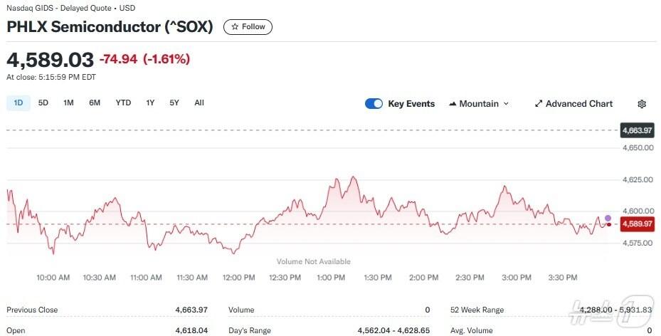 반도체지수 일일 추이 - 야후 파이낸스 갈무리엔비디아 일일 주가추이 - 야후 파이낸스 갈무리인텔 일일 주가추이 - 야후 파이낸스 갈무리립부 탄 CEO - 인텔 홈피 갈무리관련 키워드반도체지수엔비디아인텔브로드컴TSMC마이크론립부 탄박형기 기자 18일 오전 6시 마이크론 실적 발표, 또 AI 주 급락하나中 GPU 업체 메타X 상장 첫날 주가 755%까지 폭등관련 기사엔비디아 0.81% 상승에도 반도체지수 0.46% 하락(종합)엔비디아 0.73% 상승에도 반도체지수 0.61%↓ 7000 붕괴(종합)브로드컴 충격, 반도체 우수수…반도체지수 5.10% 급락(종합)오라클 충격에 반도체주 일제 하락, 반도체지수 0.75%↓(상보)엔비디아 0.64% 하락에도 반도체지수는 1.29% 상승(종합)