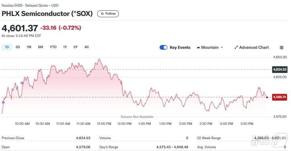 반도체지수 일일 추이 - 야후 파이낸스 갈무리엔비디아 일일 주가추이 - 야후 파이낸스 갈무리관련 키워드반도체지수엔비디아AMD인텔브로드컴박형기 기자 중국 전기차 결국 북미 대륙 상륙…테슬라 어쩌나도이치은행 투자 등급 상향에도 쿠팡 0.56% 하락관련 기사마이크론 7.76% 급등, 반도체지수 1.15% 상승(종합)TSMC 대만증시에서 3.25% 급등, 사상 최고치 경신TSMC 역대급 실적, 힘 빠지던 AI 랠리에 '동력'…반도체주 들썩(종합)TSMC 韓반도체주도 끌어 올려…삼전 3%-SK하이닉스 1%TSMC 전세계 반도체 랠리 이끌어…한국도 랠리할 듯