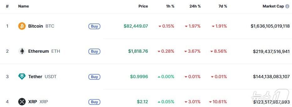 이 시각 현재 주요 암호화폐 시황 - 코인마캣캡 갈무리관련 키워드Blockchain비트코인리플위험자산 회수박형기 기자 “지금이라도 메모리 반도체에 베팅하라”-블룸버그“TSMC 랠리로 코스피 11일 연속 신고가 행진”-블룸버그관련 기사상원 암호화폐법 표결 연기, 서클 10% 폭락(상보)상원 암호화폐법 표결 연기, 암호화폐 일제↓ 리플 3%(상보)[속보] 암호화폐 일제 하락, 리플 3%↓ 최대 낙폭피난처 급부상, 암호화폐 랠리…비트 9만7000달러 회복(종합)피난처 급부상, 암호화폐 일제 랠리…비트 9만7000달러 회복(상보)