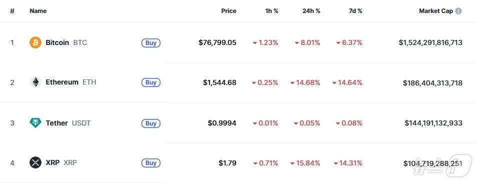 이 시각 현재 주요 암호화폐 시황 - 코인마켓캡 갈무리관련 키워드Blockchain트럼프관세비트코인리플박형기 기자 “지금이라도 메모리 반도체에 베팅하라”-블룸버그“TSMC 랠리로 코스피 11일 연속 신고가 행진”-블룸버그관련 기사철강 관세 인상 소식에 암호화폐 낙폭 더 늘려…리플 5%↓(종합)미중 긴장 다시 고조, 암호화폐 일제↓ 리플 4.3% 급락(상보)미증시 일제 상승에도 암호화폐 혼조, 리플은 1% 상승트럼프 EU 관세 연기, 암호화폐 일제↑ 리플 0.28%무역 긴장 다시 고조, 암호화폐도 일제↓ 리플 4%(상보)