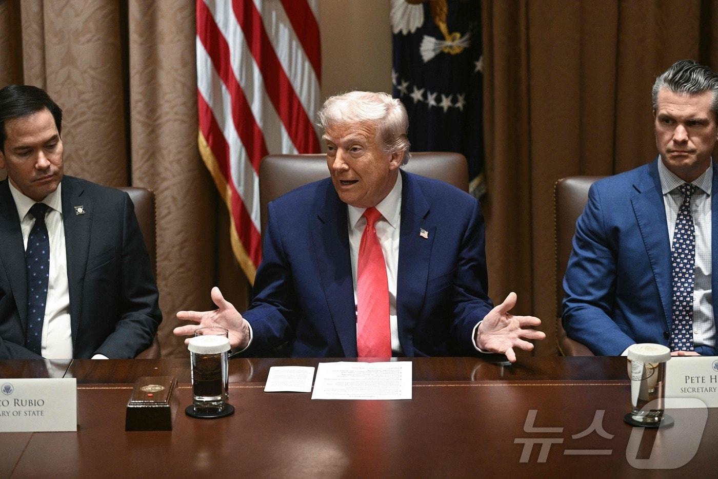 취임 후 중국에 145% 추가 관세…각료 회의서 "中과 좋은 결과 있을 것" 주장철강 보복관세 유예한 EU에는 "현명", 90일 유예기간 연장 여부에는 "가봐야"도널드 트럼프 미국 대통령이 10일(현지시간) 워싱턴DC 백악관 내각 회의실에서 마코 루비오 국무장관(왼쪽)과 피트 헤그세스 국방장관(오른쪽)이 지켜보는 가운데 발언하고 있다. ⓒ AFP=뉴스1 ⓒ News1 류정민 특파원관련 키워드트럼프관세미국대선시진핑상호관세류정민 특파원 조셉 윤 "트럼프는 北과 대화 원하지만…김정은 아직 준비 안 돼"[특파원 칼럼]트럼프 2기 1년…'韓 핵잠 성공'이 던진 안보과제관련 기사美대법 관세판결에 중간선거까지…2026년 세계 흔들 정치이벤트정청래 "정부와 대미투자 특별법 신속처리…APEC특위 설치"트럼프 "中, 희토류 수출 유지…펜타닐 관세 10%p 인하"(종합)트럼프 "對中 펜타닐관세 인하·희토류 등 많은 해결 예상"(종합)트럼프 "미중 성공적 합의 이룰 것…내년 초 中 방문 계획"(종합)