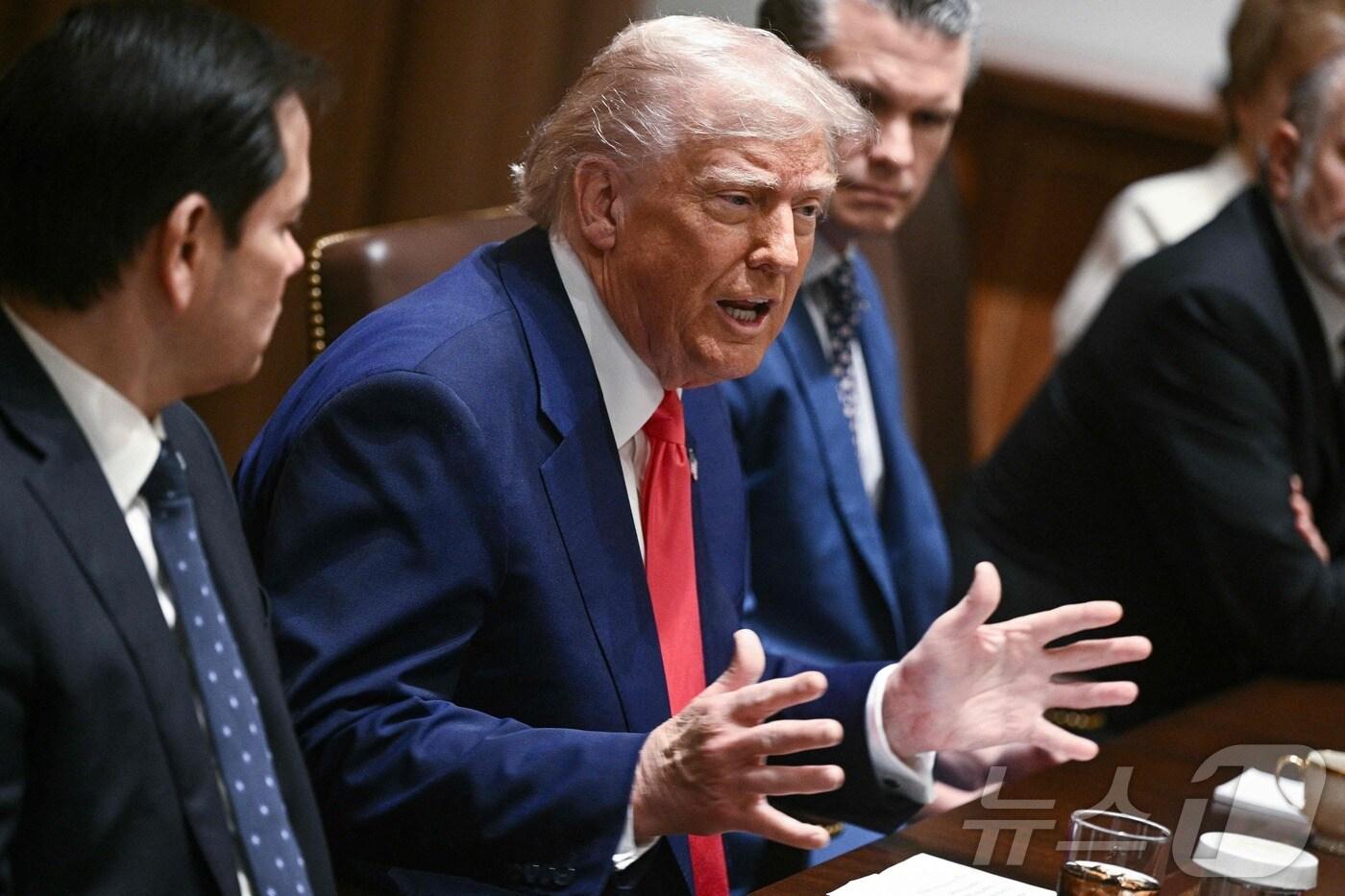 도널드 트럼프 미국 대통령이 10일(현지시간) 워싱턴 백악관에서 열린 각료회의서 “조선업을 매우 잘하는 국가로부터 최첨단 선박을 주문할 수 있을 것이다”고 밝히고 있다. 2025.04.11 ⓒ AFP=뉴스1 ⓒ News1 우동명 기자