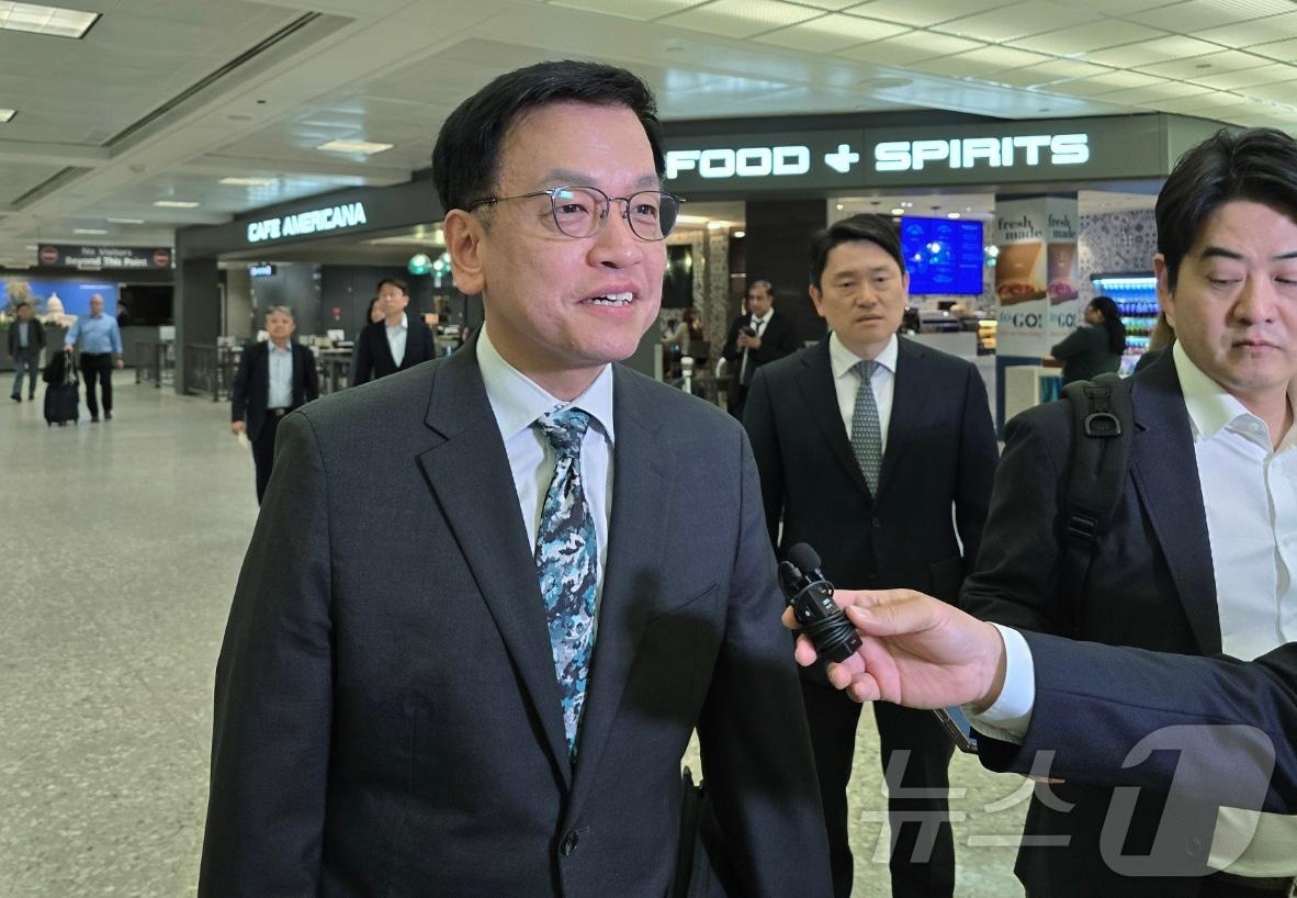 트럼프 2기 출범 후 한국 관료 중 최고위급, 오는 24일 미국 측과 '2+2 통상협의'최상목 부총리 겸 기획재정부 장관이 22일(현지시간) 워싱턴DC 인근 덜레스 공항을 통해 입국하면서 오는 24일 열리는 '한미 2+2 통상회의'와 관련, "한미 동맹을 더욱 튼튼히 하겠다"라고 말하고 있다. ⓒ News1 류정민 특파원관련 키워드트럼프관세미국대선최상목안덕근2+2류정민 특파원 트럼프 "이란 공격 않은 것은 교수형 멈췄기 때문…계속 지켜봐야"트럼프 "그린란드 계획 협조 않는 국가에 관세 부과할 수도"(종합)관련 기사국힘, '2+2 협의' 무산에 "준비된 대통령 맞나" "총체적 외교실패"李정부, 경제·통상 투톱 출격…D-12 한미 관세협상 '총력전''주한미군 감축설' 한미 관세협상에 부담…"결국 방위비 카드 내민 것"한미 외교장관 통화…조태열 "관세, 시간 갖고 협의" 당부(종합)의약품·영화에도 美관세 예고…이번주 한미 실무협의 촉각(종합)