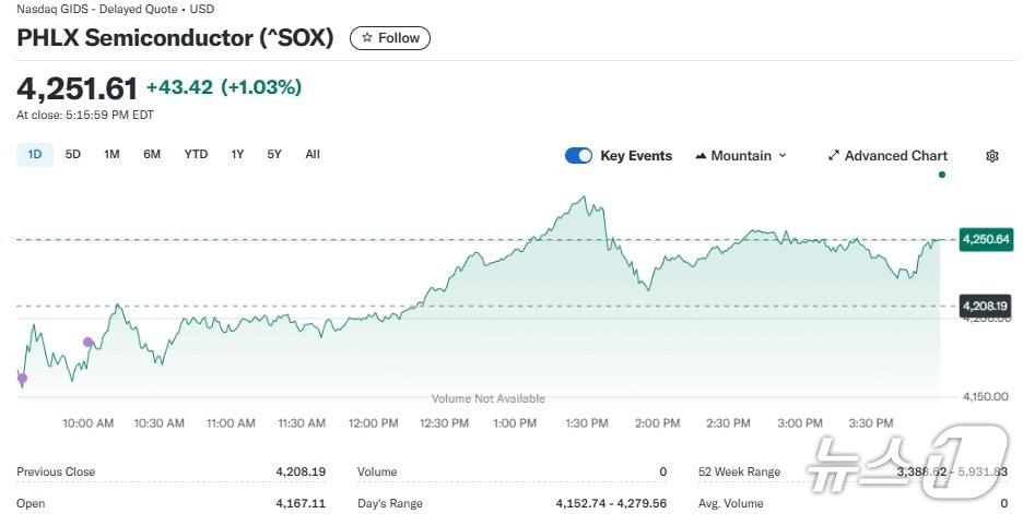 반도체지수 일일 추이 - 야후 파이낸스 갈무리엔비디아 일일 주가추이 - 야후 파이낸스 갈무리인텔 일일 주가추이 - 야후 파이낸스 갈무리관련 키워드반도체지수엔비디아AMD인텔브로드컴TSMC박형기 기자 월마트 “이제 AI 기업이라 불러다오” 시총 1조달러 눈앞CPI 발표 앞두고 지수 선물 일제 하락, 다우 0.14%↓관련 기사엔비디아 0.06% 상승, 반도체지수 0.47%↑(상보)인텔 10.80% 폭등, 반도체지수도 2.73% 급등(종합)외인 순매도에 코스피 4500선 '위태'…삼전·SK하닉, 동반 하락[개장시황]퀄컴 제외 반도체주 일제 하락, 반도체지수 1.83%↓(종합)"삼전 '역대급 실적'에도 주춤"…코스피는 4550선 등락[개장시황]