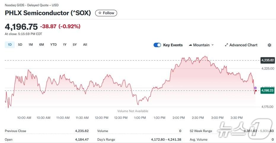 반도체지수 일일 추이 - 야후 파이낸스 갈무리엔비디아 일일 주가추이 - 야후 파이낸스 갈무리관련 키워드반도체지수엔비디아인텔퀄컴마이크론브로드컴박형기 기자 "이란 대규모 시위 주요 은행 파산에서 시작돼"-WSJ트럼프 관세 폭탄에도 지난해 中무역흑자 1.2조달러 '사상 최고'관련 기사인텔 7%-AMD 6% 급등, 반도체지수 1% 상승(종합)CPI 둔화에도 실적 우려, 미증시 일제 하락…다우 0.80%↓(상보)[속보] 미증시 일제 하락에도 반도체는 랠리, 반도체지수 1%↑엔비디아 0.06% 상승, 반도체지수 0.47%↑(상보)인텔 10.80% 폭등, 반도체지수도 2.73% 급등(종합)