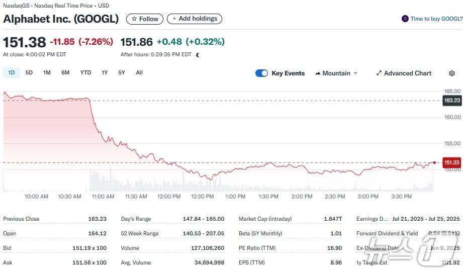 알파벳 일일 주가추이 - 야후 파이낸스 갈무리애플 일일 주가추이 - 야후 파이낸스 갈무리관련 키워드애플구글알파벳AI검색엔진박형기 기자 美고용 지표 혼조, 암호화폐 일제↓ 리플 최대 낙폭(상보)[속보] 암호화폐 일제 하락, 리플 2.07달러까지 떨어져관련 기사알파벳 또 사상 최고치, 시총 4조달러 턱밑까지애플 또 0.5% 하락, 알파벳과 시총차 더 벌어져알파벳 1.1% 상승, 또 사상 최고…시총 4조달러 눈앞나스닥 0.44%↓ 다우 0.53%↑…혼조세 마감[뉴욕마감]애플의 굴욕, 알파벳에 추월당해 시총 3위까지 밀려