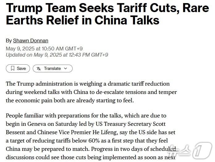 해당 기사 - 블룸버그 갈무리관련 키워드미중 무역전쟁트럼프관세베선트허리펑박형기 기자 "이란 대규모 시위 주요 은행 파산에서 시작돼"-WSJ트럼프 관세 폭탄에도 지난해 中무역흑자 1.2조달러 '사상 최고'관련 기사[새해 미중관계]"트럼프-시진핑 휴전 오래 못가"…4대 뇌관 점검美재무 "트럼프·시진핑, 내년 4차례 만날 수도…1년간 휴지기"(종합)美재무 "中 희토류 수출통제 25~30년 준비…위험축소 필요"(종합)트럼프 "이미 많은 사안 합의"…시진핑 "양국 공동번영 가능"(종합)트럼프·시진핑 정상회담 시작…미중 양측 기대감 고조(종합)